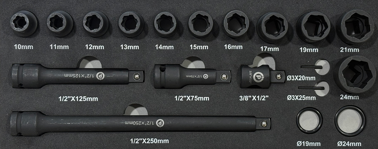 Powerhand 1/2" Impact anti slip doppenset, 19-dlg