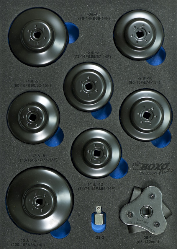 BOXO 3/8” Oliefilterdopsleutelset voor Europese voertuigen 16-dlg.